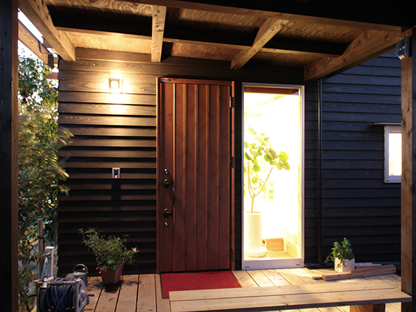 天然木で仕上げた、黒い外壁がこの家の特徴。